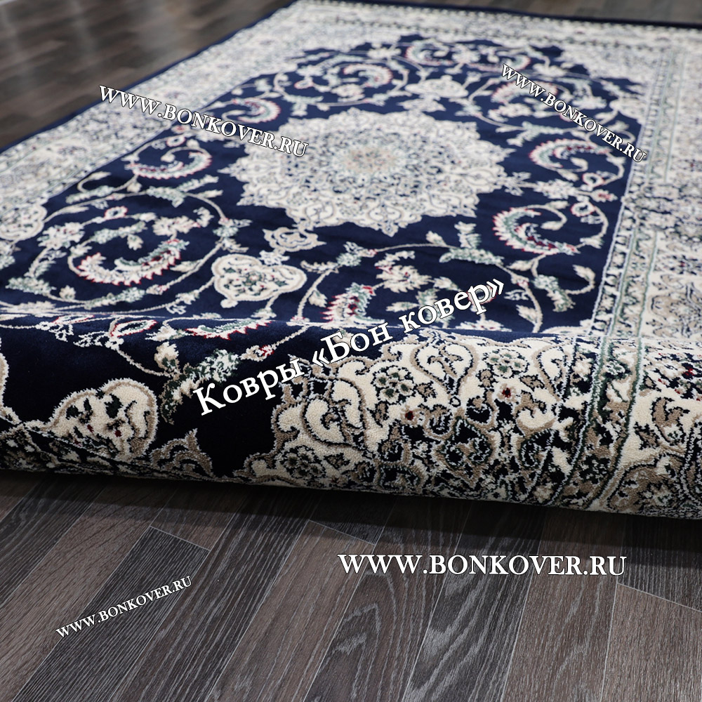 Шикарный Ковер Для Гостиной Дизайн 30837 Темно-Синий наполняет интерьер жилого пространства теплом и уютом, гармонично сочетает в себе изящество и красоту. Он изготовлен из экологически чистого сырья, комфортный и долговечный.