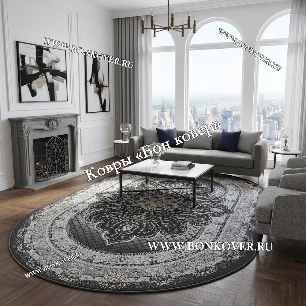 Ковер Для гостиной дизайн 68 Турция Серый Овал станет великолепным преображением вашей комнаты, подчеркивая высокий статус владельца.