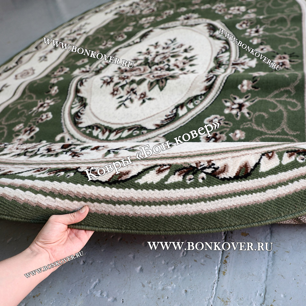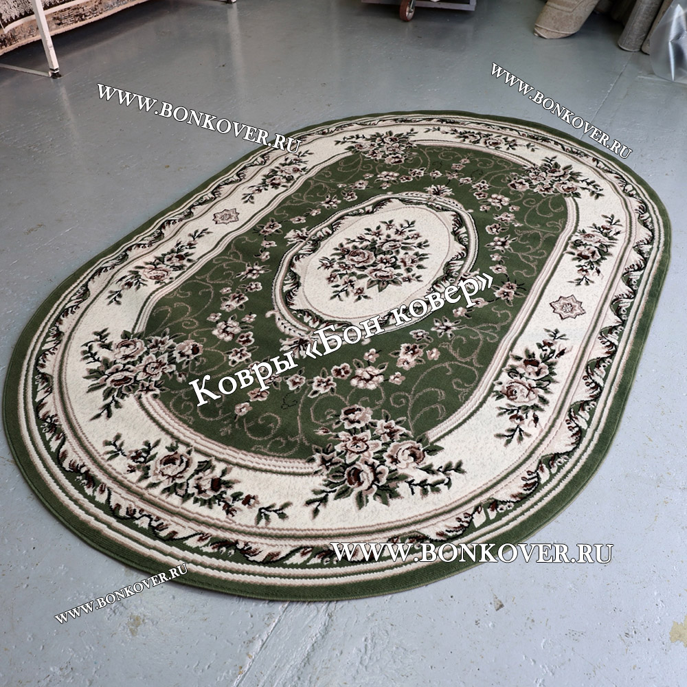 Изящный Ковер Лайт Карпет Дизайн 23896 Зеленый Овал наполняет интерьер помещения теплом и уютом, гармонично сочетает в себе изящество и стиль. Он создан из современных материалов, комфортный и долговечный.