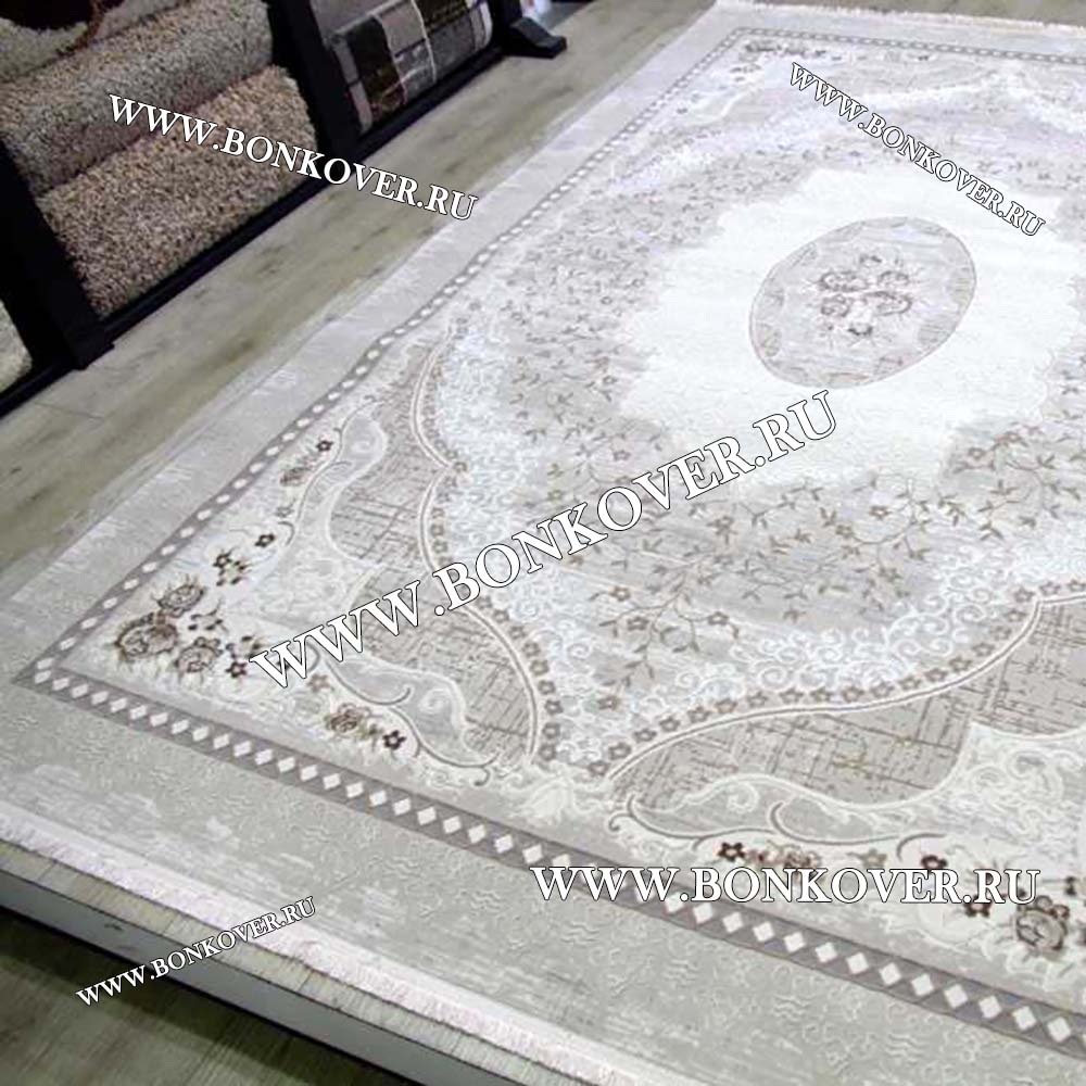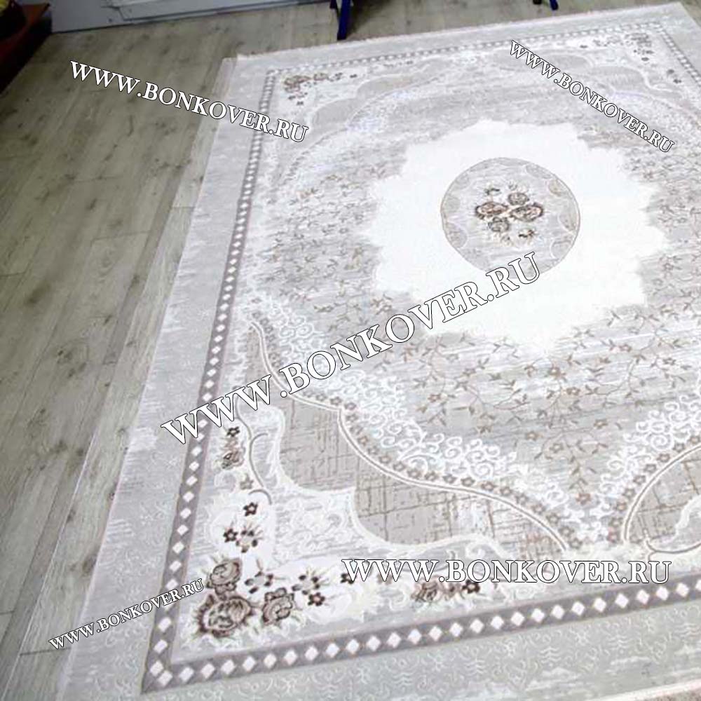 Красивый Ковер Турция Для Гостиной Дизайн 71 Серый с Бежевым наполняет интерьер жилого пространства теплом и уютом, гармонично сочетает в себе изящество и красоту. Он выполнен из современных материалов, прочный и долговечный.