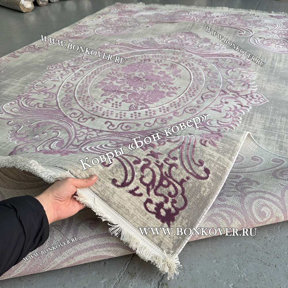 Ковер Турция Для Гостиной Дизайн 80 Сиреневый станет привлекательным дополнением интерьера, оформленного в современном или классическом стиле. Мягкое, но прочное, ковровое изделие обеспечивает тепло- и шумоизоляцию, отличается длительным сроком эксплуатации, пожаробезопасностью, экологичностью и высокой износостойкостью, является отличной преградой от повышенной влажности в помещении и утеплителем для холодного пола. Благодаря качеству материалов, ковер не деформируется, сохраняет первоначальный вид под тяжестью предметов мебели. За его поверхностью легко ухаживать.