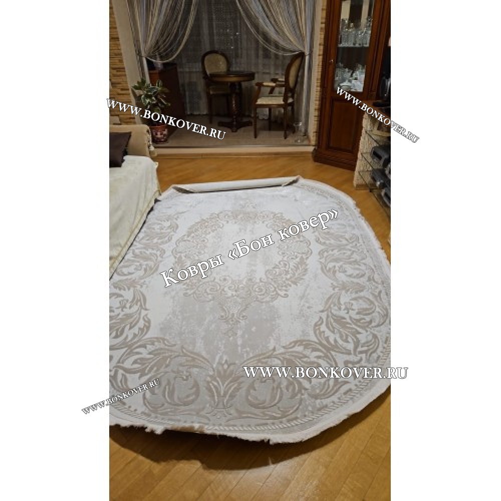 Ковер Турция Для Гостиной Дизайн 95 Белый с Бежевым станет великолепным преображением жилого помещения, подчеркивая высокий статус семьи владельца.